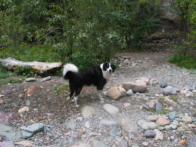 When we arrived in Missoula on Wednesday, after I had slept a bit, the first thing Rain wanted to do was visit the river. We took Anna's beautiful dog Ire along, and Rain told me the story of how this dog once saved her life.